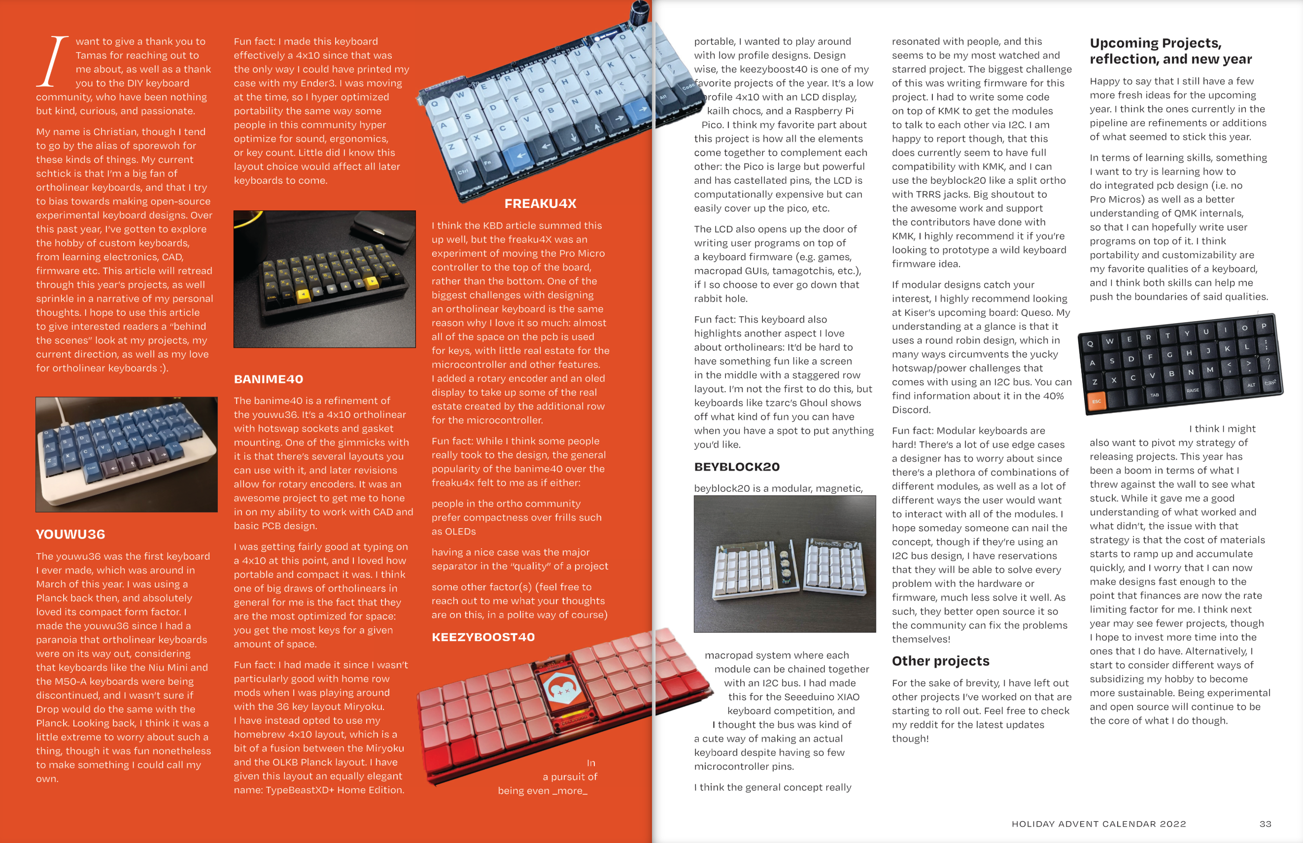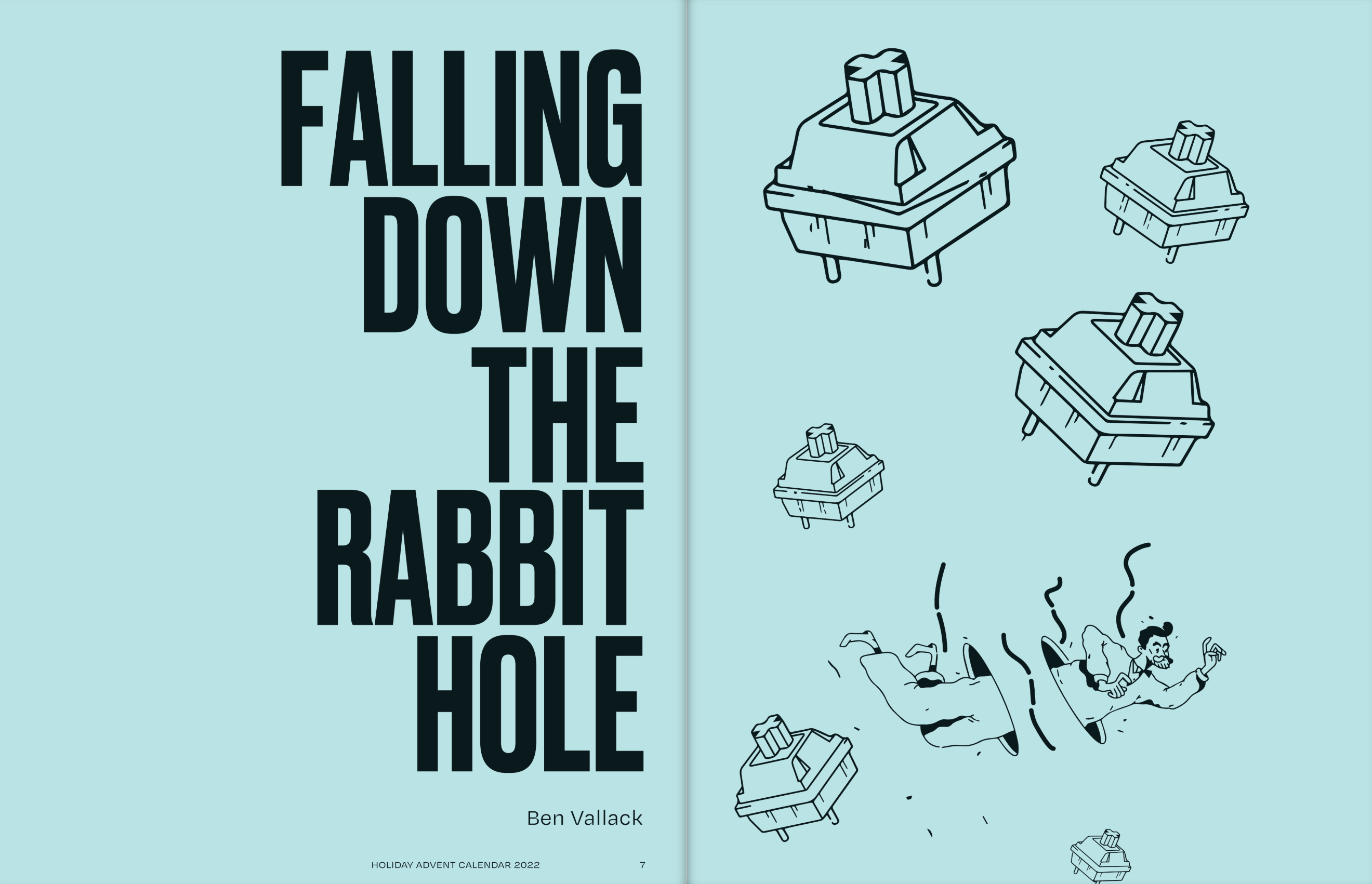 Switch+ Magazine was designed as a passion project for a niche interest of mine, that being custom mechanical keyboards. I have talked with countless enthusiasts about their love for the hobby, along with larger creators, and even collaborated with the online newsletter KBD.News to create a phyisical version of their online newsletter.
